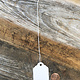 White paper sting tags with white strings. These large pricing tags may be written on with a ball point or permanent pen.